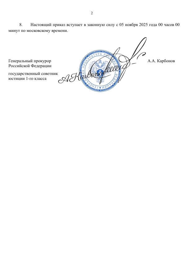 ПРИКАЗ Генерального прокурора РФ №0008 от 04.11.2025 года