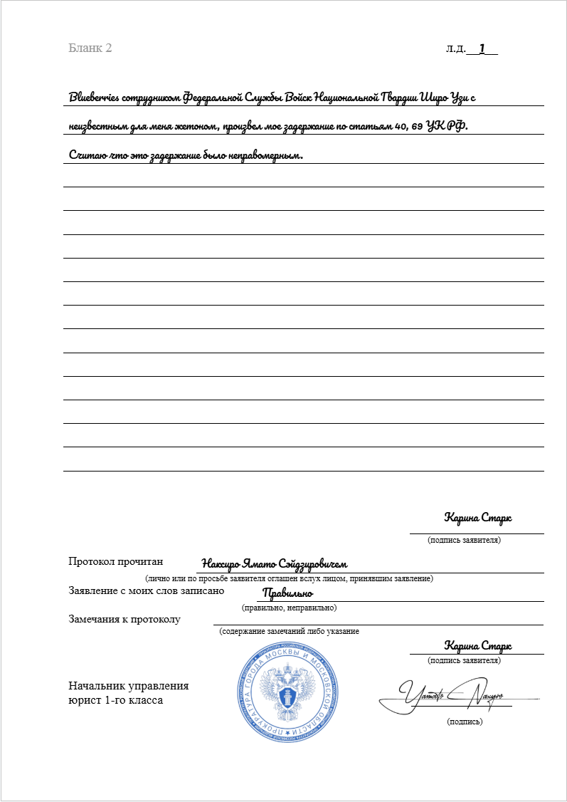 Устное заявление №14 от Карины Старк