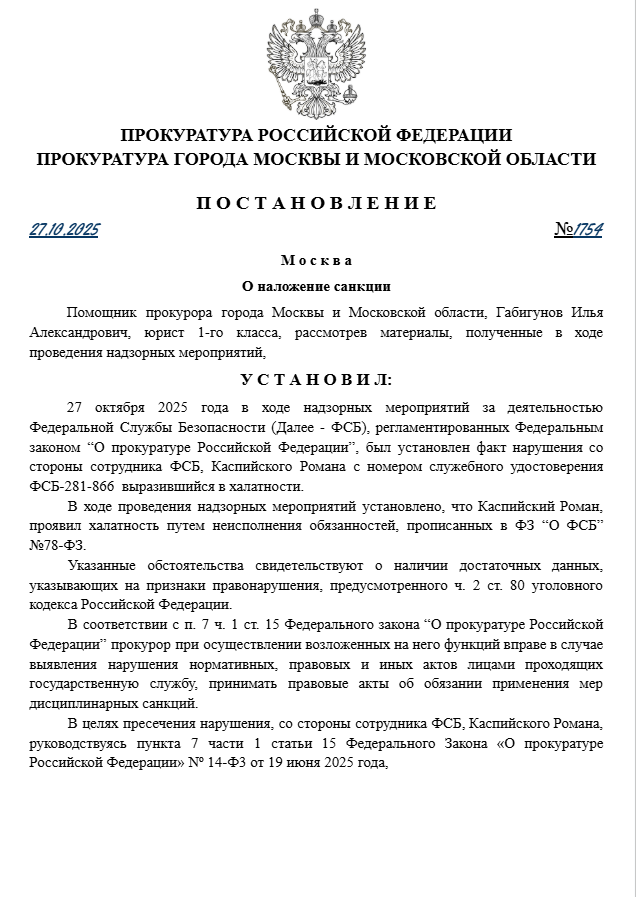 Внимание! Данный сайт является частью игрового RP проекта и не имеет отношения к реальной прокуратуре.