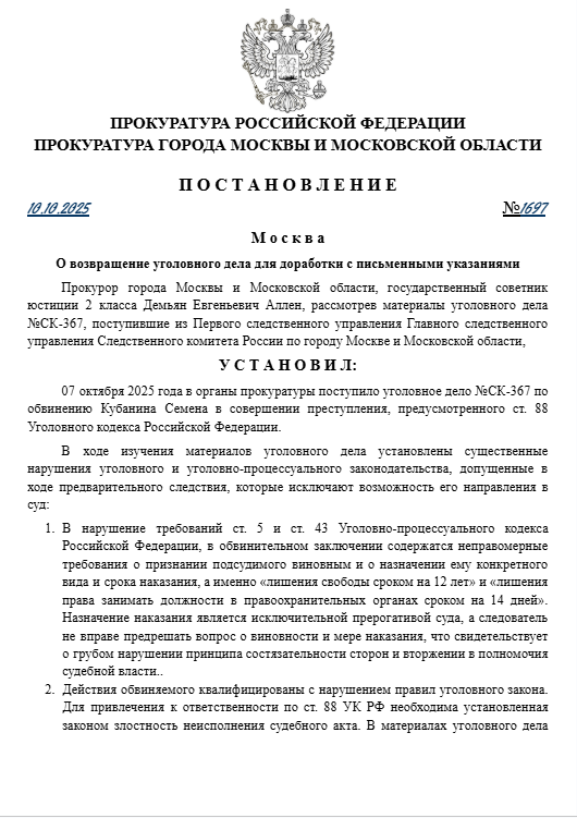 Внимание! Данный сайт является частью игрового RP проекта и не имеет отношения к реальной прокуратуре.