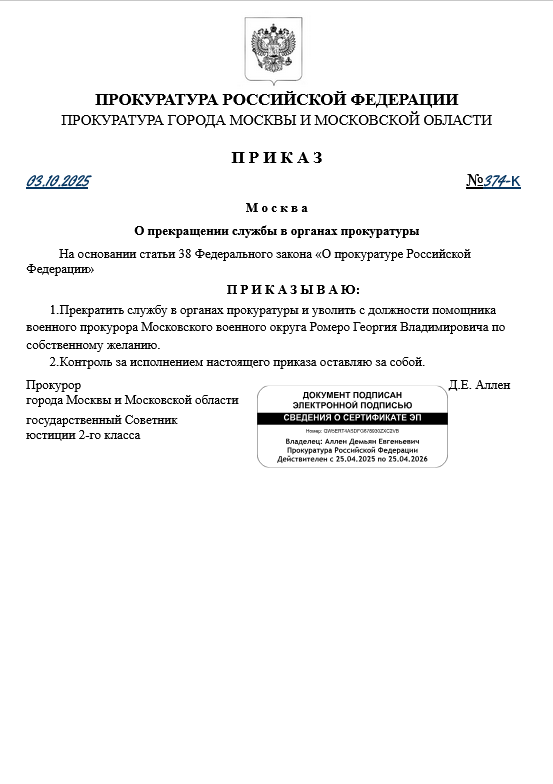 Приказ № 374 от 3 октября 2025 года