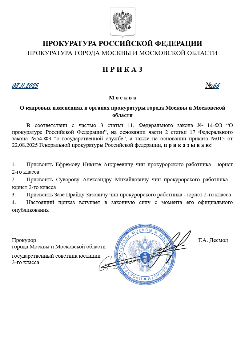 О кадровых изменениях в органах прокуратуры города Москвы и Московской области