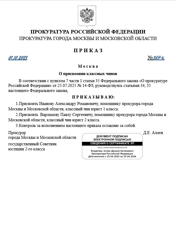 Приказ № 369 от 1 октября 2025 года